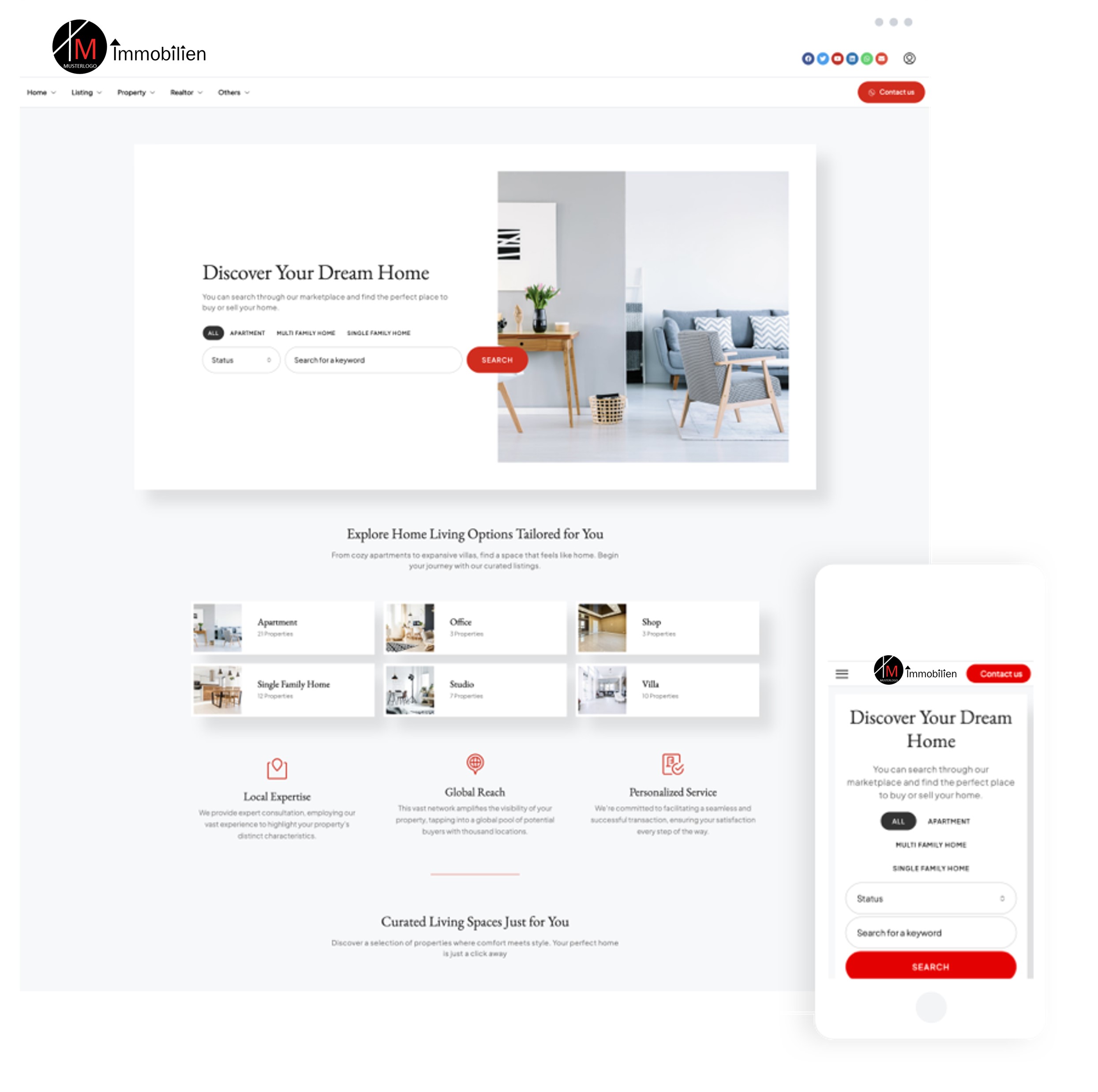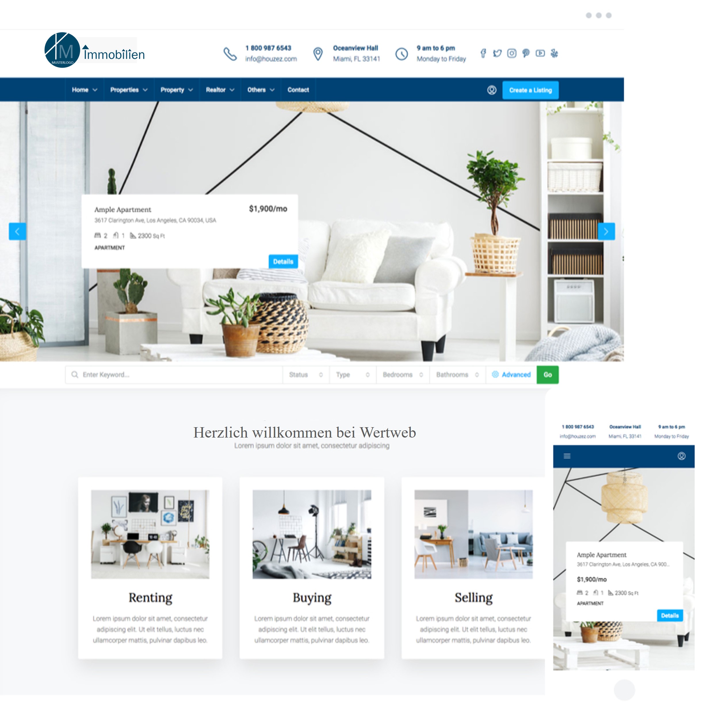 Suchfunktionen: Eine leistungsfähige Suchfunktion ermöglicht es Benutzern, schnell nach Immobilien zu suchen, die ihren Kriterien entsprechen. Filteroptionen sollten zur Verfügung stehen, um die Suche zu verfeinern, z.B. nach Preis, Standort, Immobilientyp, Größe usw.